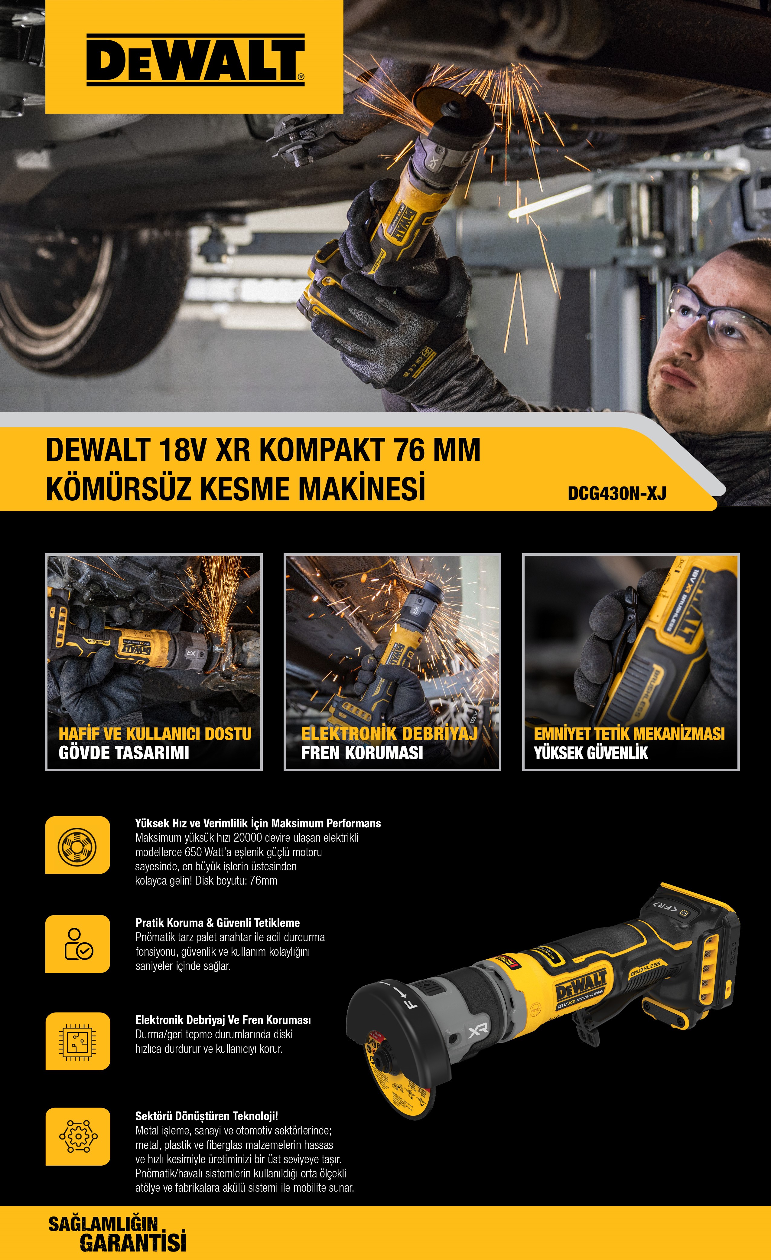 Dewalt DCG430N Kömürsüz Kesme Makinası Aküsüz | dewdepo